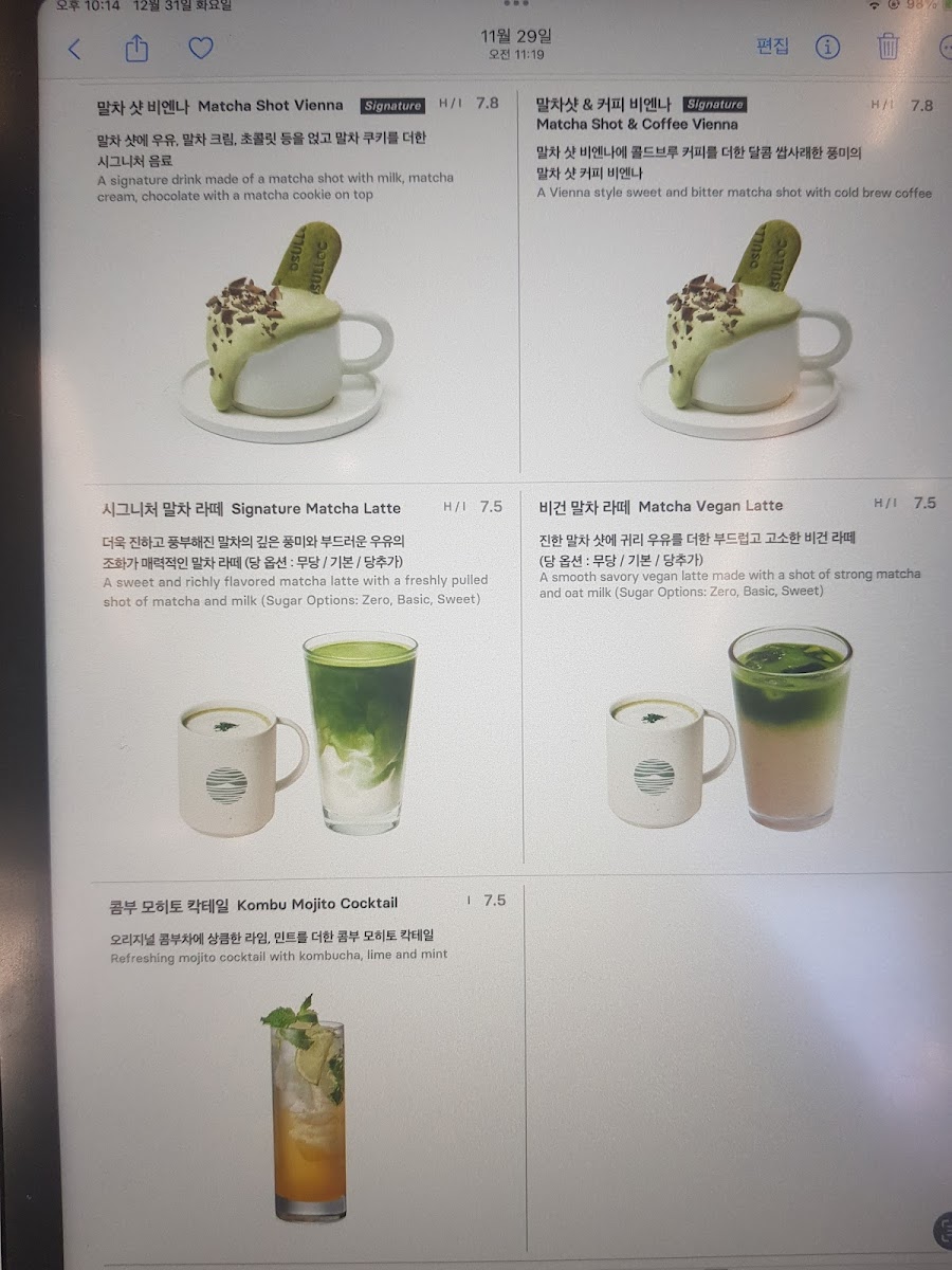OSULLOC Tea House Haeundae Menu